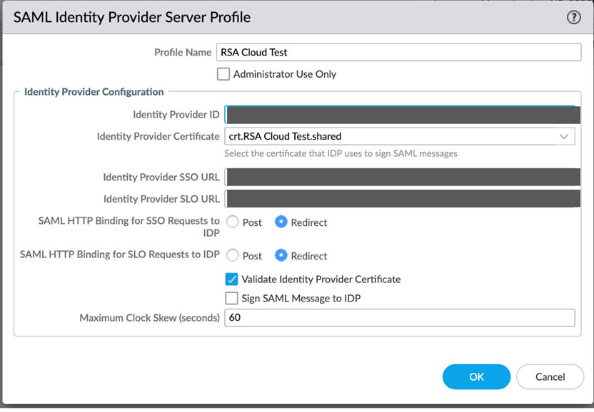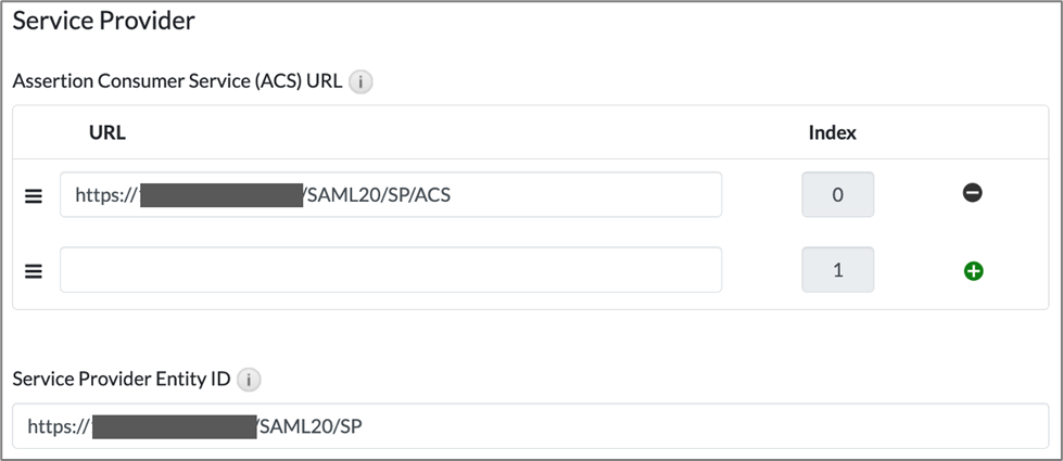 - Service Provider Entity ID: https://<FQDN or IP>:443/SAML20/SP