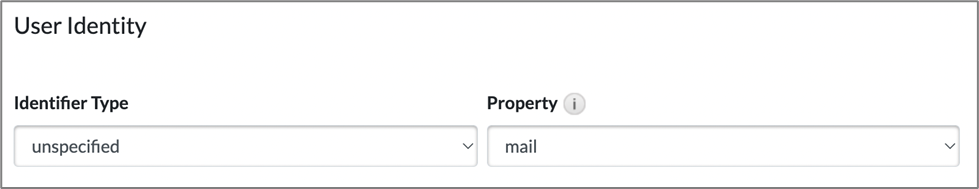- Under the User Identity section, select unspecified as Identifier Type and mail as Property.