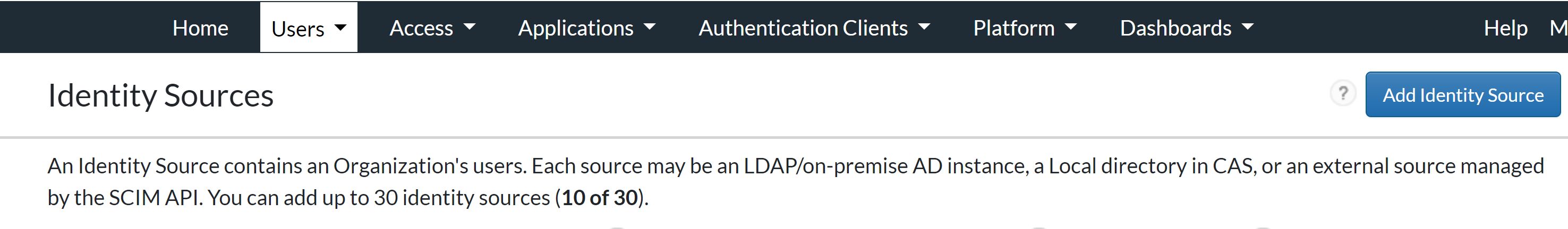 - Click Add Identity Source.