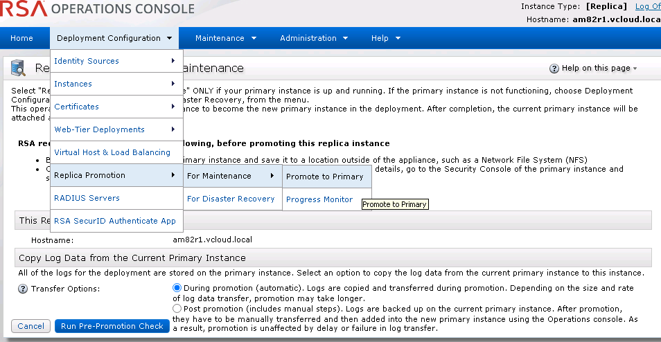 RSA Authentication Manager replica instance fails to attach to the Authentication Manager deployment 399Number of Views Promote a Replica Instance Using Promotion for Maintenance 394Number of Views Promotion for maintenance fails: Unable to apply the data updates from the primary instance 267Number of Views How to attach an RSA Authentication Manager 8.1 replica server when Quick Setup fails with error message "Failed to Attach… 1.79KNumber of Views Replica fails to attach to the RSA Authentication Manager 8.1 primary instance 1.43KNumber of Views