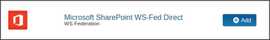 - Log in to the RSA Cloud Administration Console and browse to Applications > Application Catalog, search for Microsoft SharePoint WS-Fed and click +Add to add the connector.