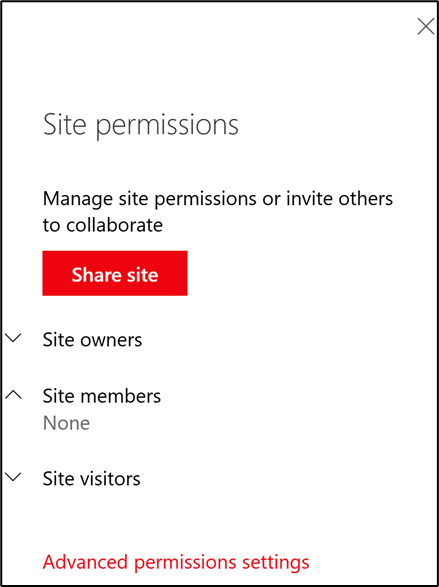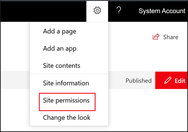 - Click the Site permissions link in the Users and Permissions section of the Site Settings page.