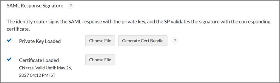 - Select the Override default signing key and certificate and click Generate Cert Bundle.