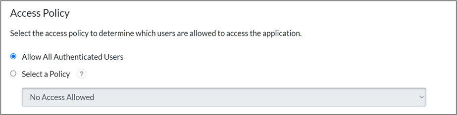 - Choose your desired Access Policy for this application.