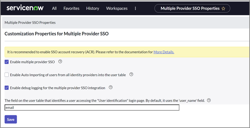 - Edit the user and add sso: followed by sys_id of the identity provider’s record to source attribute.