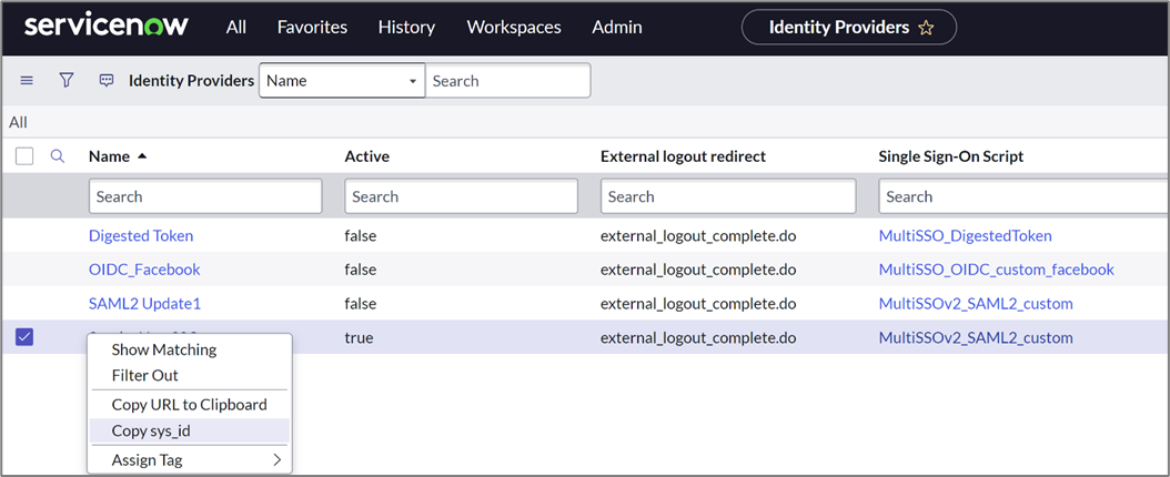 - Select Copy sys_id.