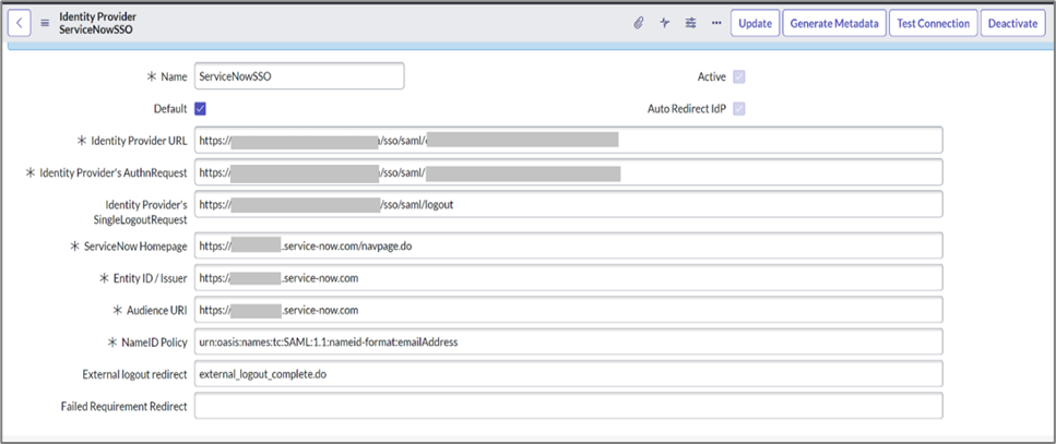 - Audience (Service Provider Issuer ID) – https://< Service provider domain >.service-now.com.