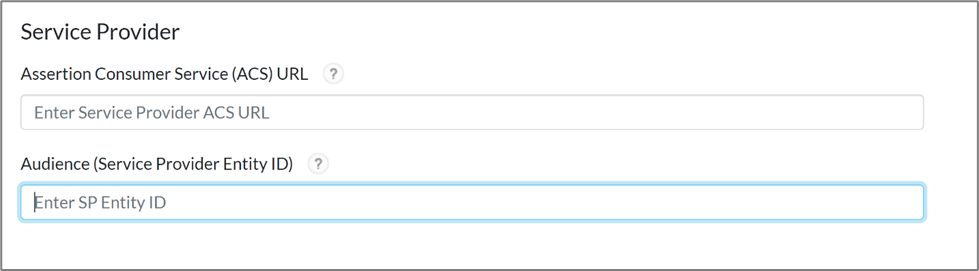 - In the Identity Provider URL and Identity Provider’s AuthRequest fields, enter the Identity Provider entity ID if not already populated.