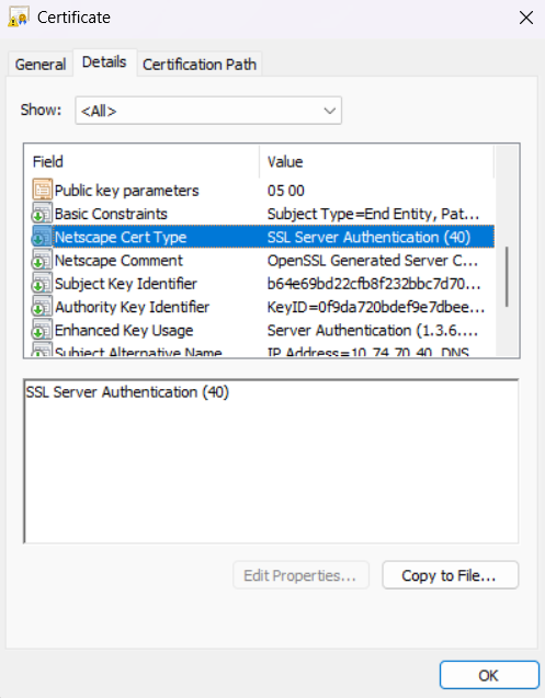 Logs show: javax.net.ssl.SSLHandshakeException: sun.security.validator.ValidatorException: Netscape cert type does not permit use for SSL server