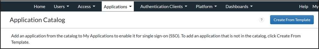 - Sign in to RSA Cloud Administration Console and browse to Applications > Application Catalog.