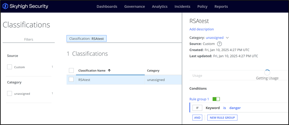 - Go to Policy >DLP Policies >Classifications. Then create a custom classification.