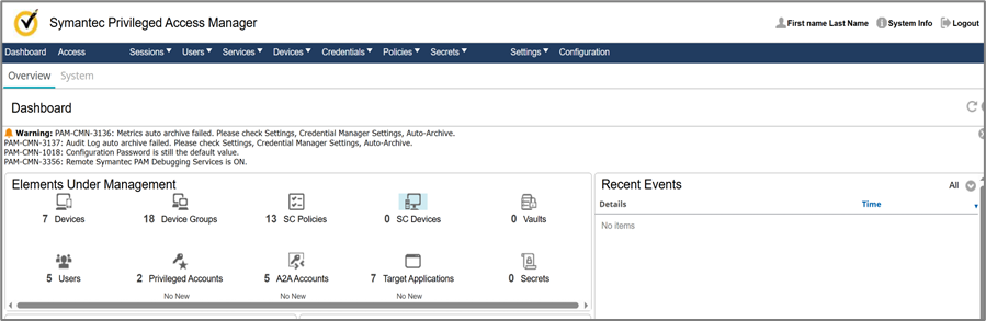 1. Log in to Symantec Privileged Access Manager with the admin account.