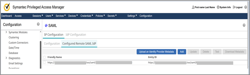 2. Service Provider Entity ID: Unique in both CAS and Symantec Privileged Access Manager.