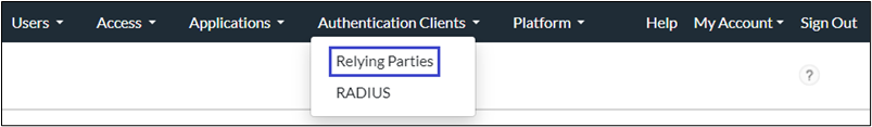 12. On the My Relying Parties page, for the created Relying Party, click the Edit drop-down icon and select the Metadata option to download the metadata.