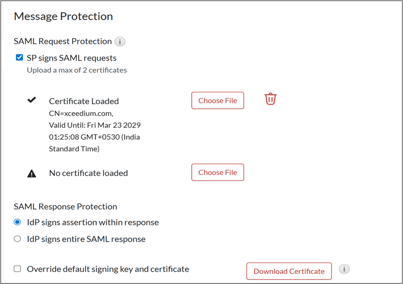 3. Certificate Key Pair: gkcert.crt. This can be uploaded in the CAS SAML request.