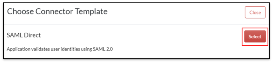 - Click Create from Template, then click Select next to SAML Direct.