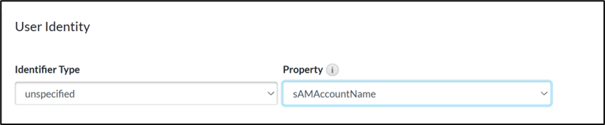 - In the User Identity section, select the following values: