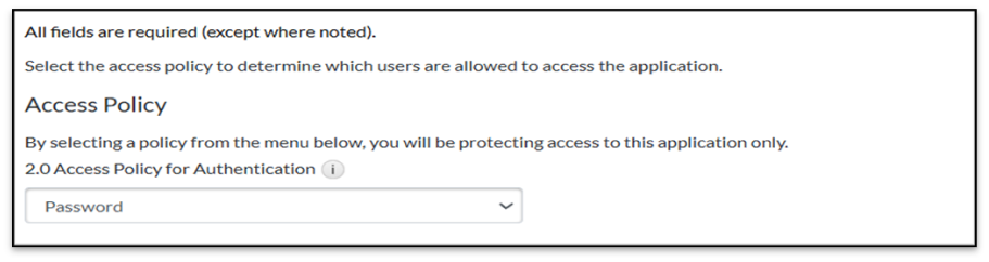 - On the User Access page, choose the access policy you want to use to determine which users can access the application, then click Next Step.