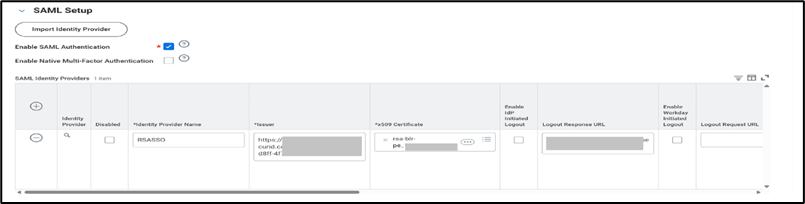 - Service Provider Entity ID: Enter the same Service Provider Entity ID entered in the format http://<WORKDAY-domain>/<tenant>/