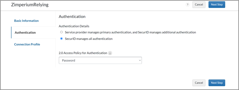 Perform these steps to configure RSA Cloud Authentication Service using Relying Party.
