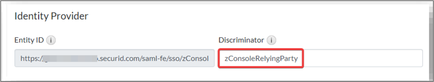 - Copy and save the entire Entity ID value. It may be wider than the text box so be sure to highlight and copy it all. For Relying Party, the Identity Provider Entity ID will be a URL with the Discriminator at the end. The Entity ID will be used when configuring the Zimperium zConsole.